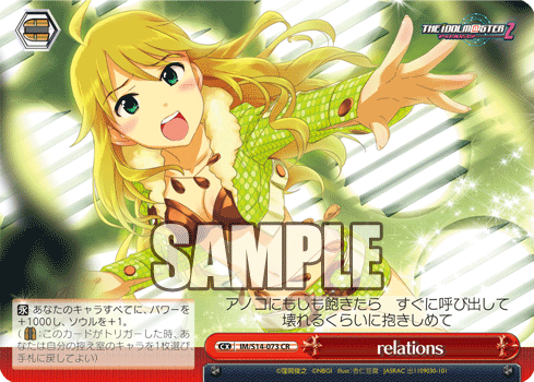 [C] During opponent's turn, if this card is in the front row centre position, all your other characters gain +1000 power.