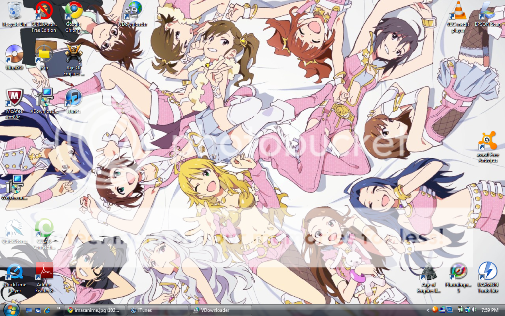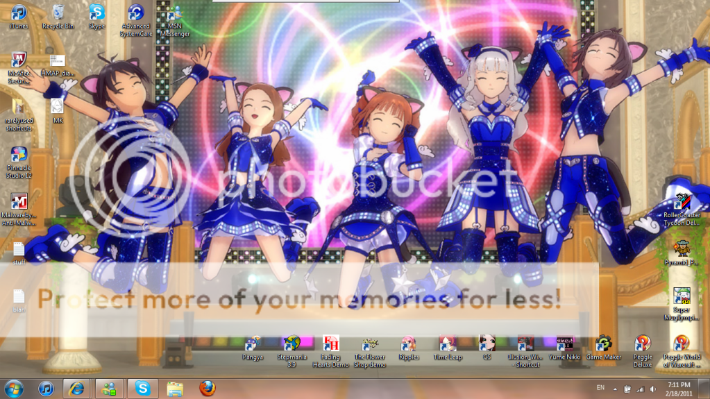 Changed up my wallpaper; they're not the clearest, but it switches between some of the newer iM@S2 screenshots every 10 minutes (and I did actually get a semi-clearer version of the Futami-twin Do-Dai!).