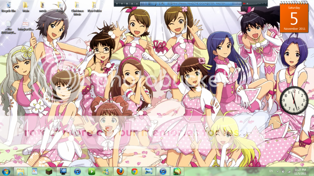 My desktop has a wallpaper slideshow on it and it happend to land on my favorite iM@S 2 wallpaper. I found it on Danbooru.