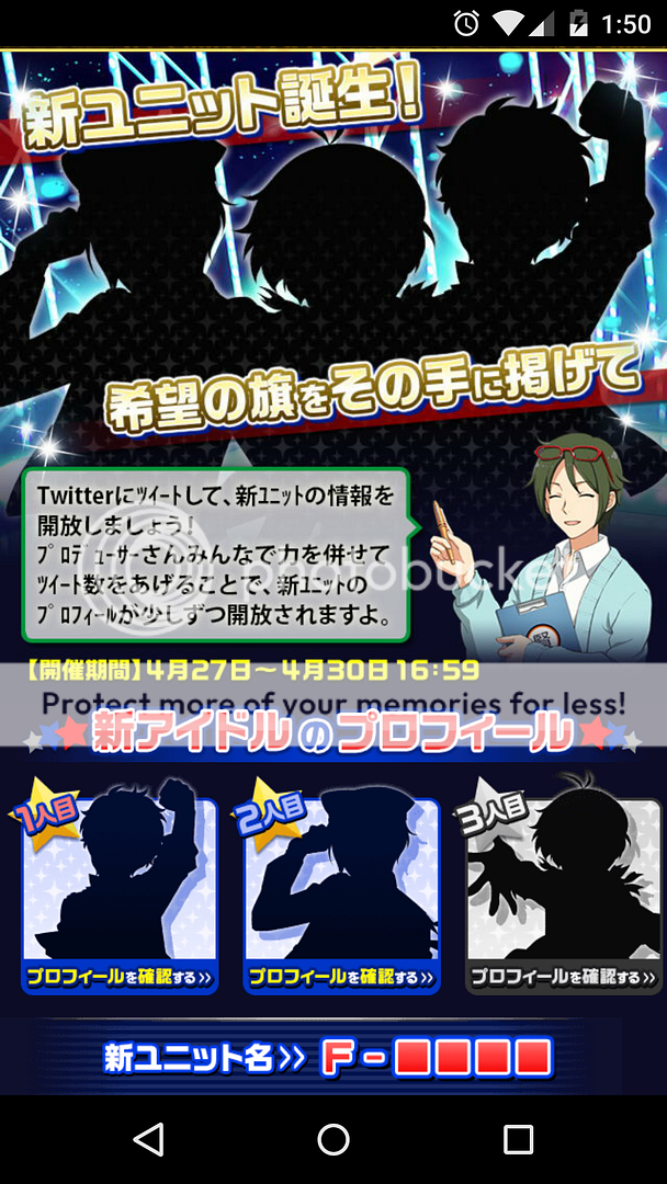 Incidentally the Twitter campaign tweet is "one of the new unit's idols is that idol!?"